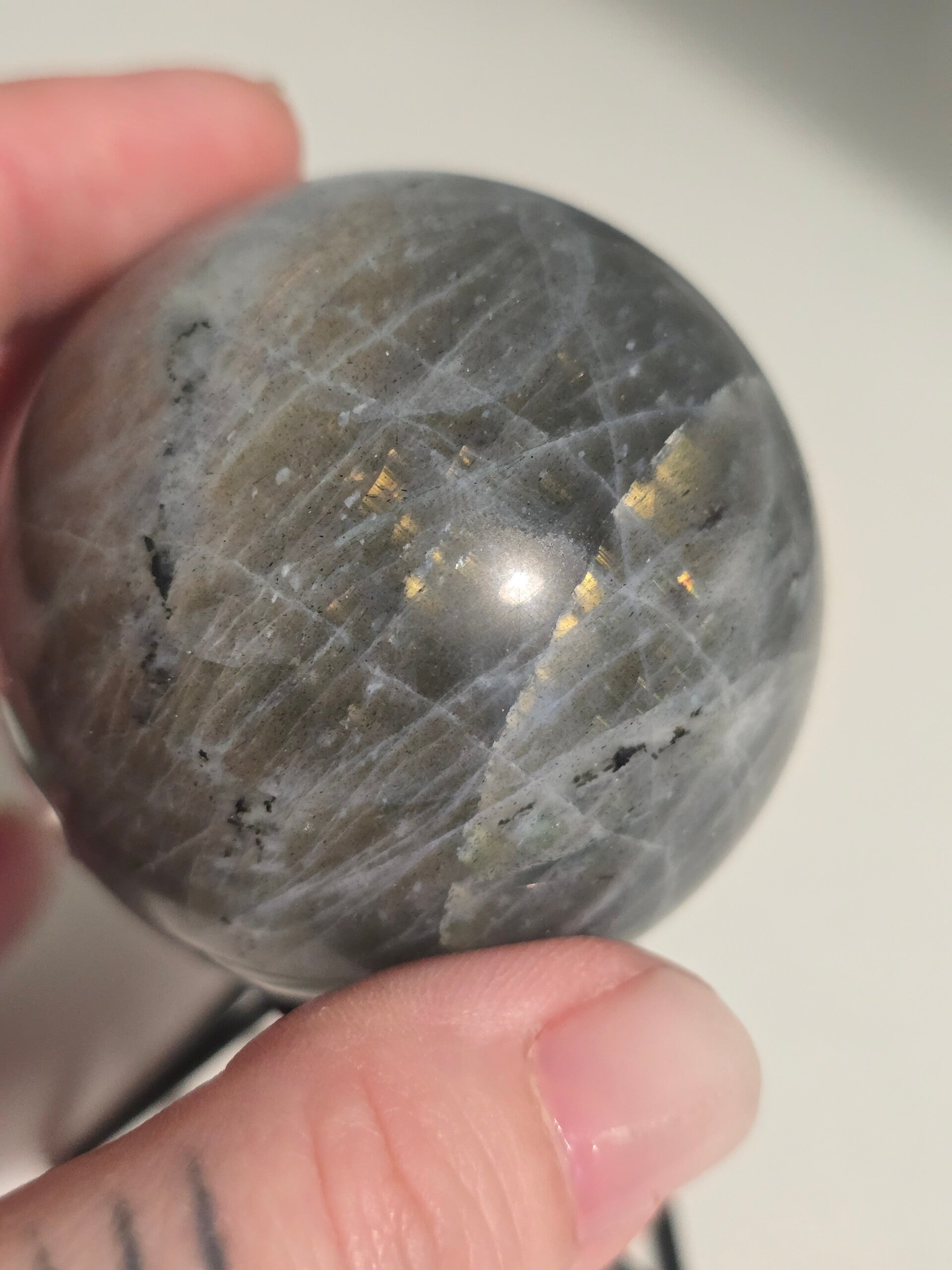 Labradorite Sphere with orange flash 241g C444